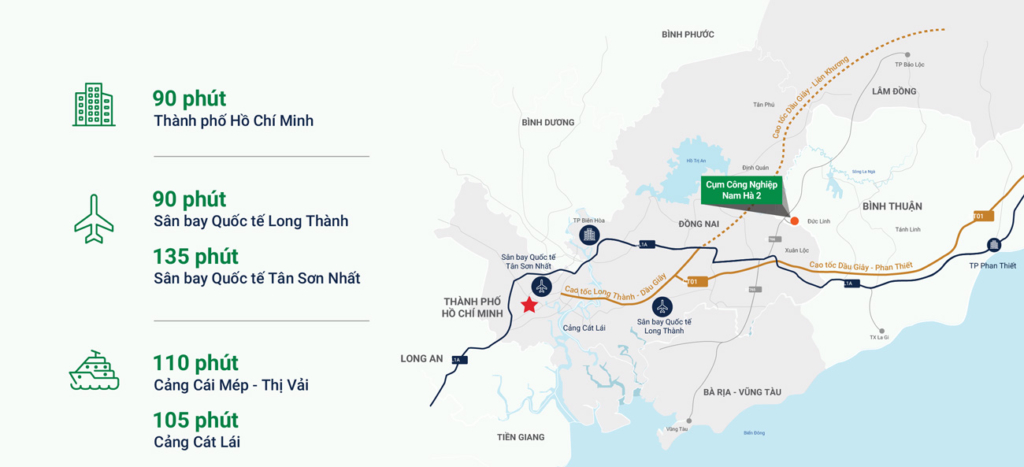 Dự án chỉ cách cao tốc Phan Thiết – TP.HCM vài phút di chuyển, kết nối trực tiếp với sân bay Long Thành và các trung tâm kinh tế Đông Nam Bộ. Đây là lợi thế hiếm có với một khu dân cư tại huyện Đức Linh, giúp tăng giá trị bất động sản trong trung và dài hạn.