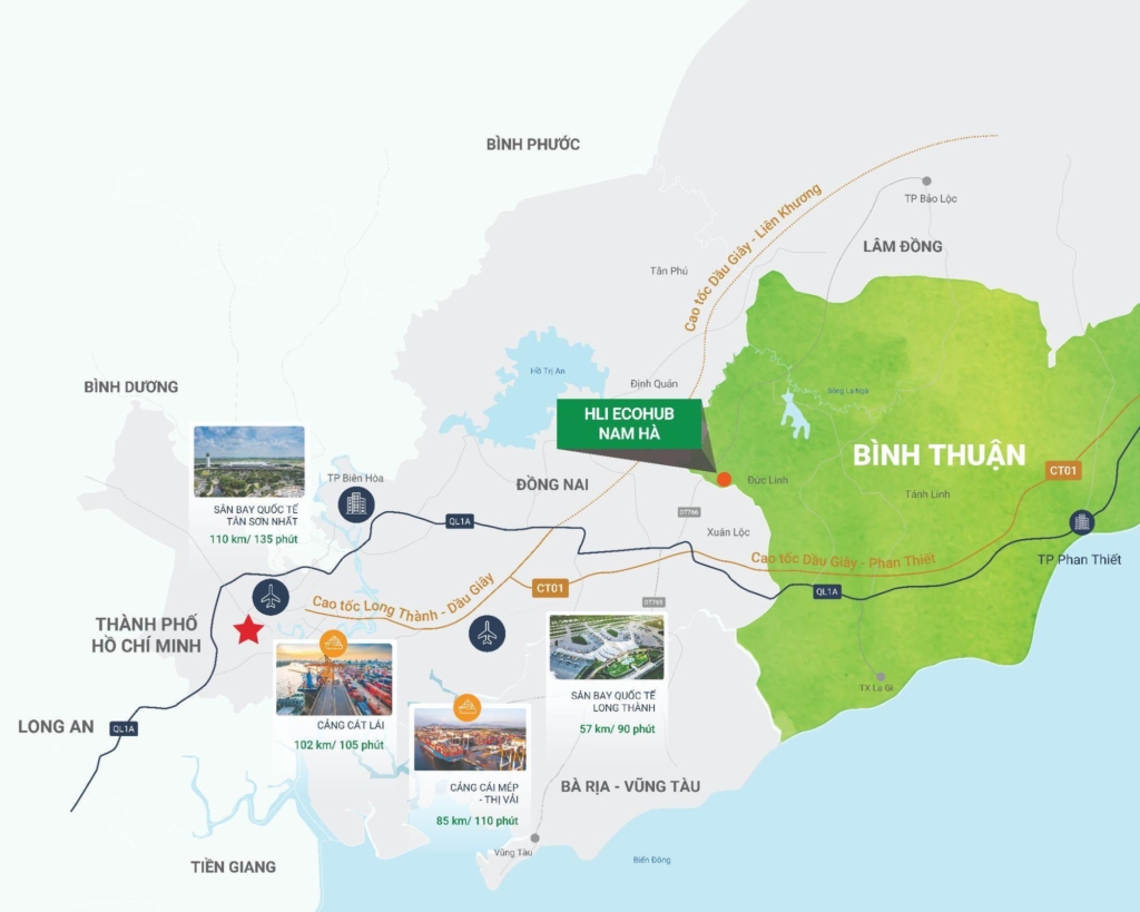Dự án nhà xưởng HLI Nam Hà sở hữu vị trí lý tưởng tại khu vực trung tâm phát triển công nghiệp phía Nam, dễ dàng kết nối đến: